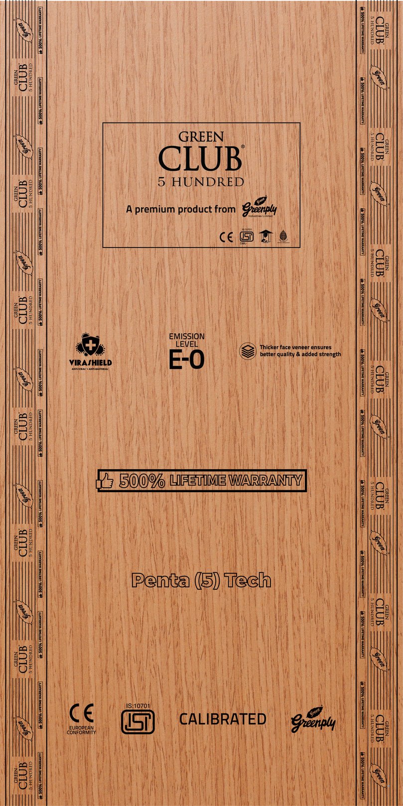 Greenply’s Club Waterproof Plywood, is a preserGSTive-treated, water-proof plywood, manufactured from select hardwood timber as per IS:710-1989. Green Club Plywood is a premium Boiling Water Proof plywood with a 300% Lifetime Guarantee. . The high strength hardwood veneer and the superior bonding strength of BWR type Phenol Formaldehyde synthetic resin adhesive, adds extra durability to the product as per IS:848-1974 It is an emission-free, eco-friendly plywood with a thicker face veneer. The adhesive used is unextended BWP Grade and has been fully treated with preserGSTives using organic chemicals. It is also glue line protected with organic chemicals. It is termite & borer proof with a density of 810 kg/m